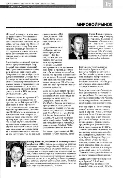 - «Квазар-Микро» начала широкомасштабную акцию по продвижению ПК начального уровня на базе Pentium-60, который стоит $1350.