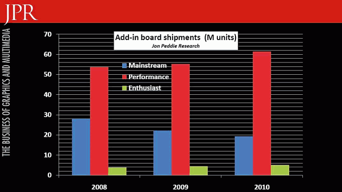 Сегмент Performance превосходит Mainstream по обьемам, и в ближайшем будущем этот разрыв будет увеличиваться, считают в JPR |