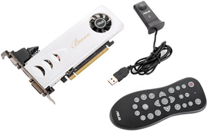 В комплекте с видеокартой поставляются удобный пульт ДУ с выносным инфракрасным датчиком и сенсором освещенности и низкопрофильная крепежная планка. Программное обеспечение ASUS Bravo Media Center и технология Splendid Vivid расширяют возможности GPU и улучшают качество изображения, выводимого на экран. Функциональность Bravo Media Center базовая, однако никто не мешает установить более мощную оболочку, например бесплатный MediaPortal. К сожалению, цена на продукт высока, но она оправдывается наличием в комплекте пульта ДУ.