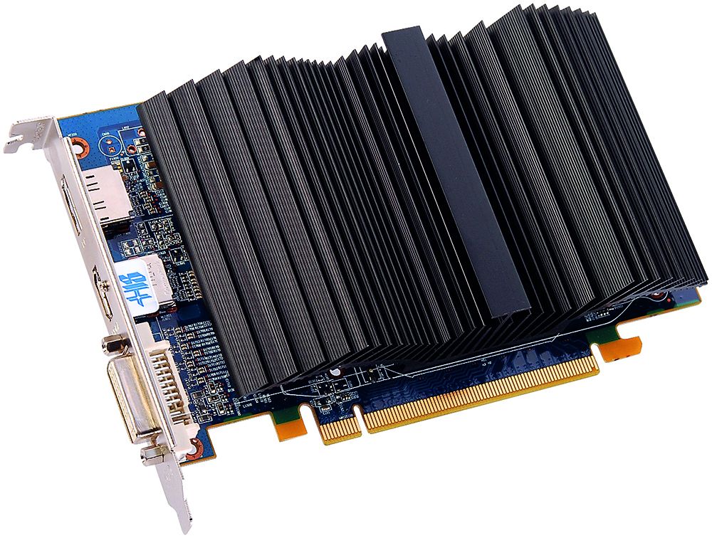 Низкое энергопотребление позволило компании обойтись без внешнего разъема питания, видеокарта довольствуется получаемым из слота PCI Express. Сама плата очень компактна, хотя и выполнена на полнопрофильном текстолите. Также экономичность сказалась и на системах охлаждения: если найти Radeon HD 5670 с пассивным охлаждением довольно сложно, то новинки с бесшумным кулером представили уже несколько вендоров, среди которых и HIS, чьи устройства мы и рассмотрим сегодня. Из оставшихся характеристик отметим наличие всех современных цифровых интерфейсов для подключения мониторов – Dual-Link DVI, HDMI и DisplayPort.