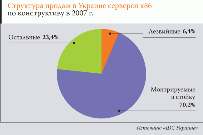 Итак, первая тенденция состоит в том, что серверы архитектуры x86 увеличивают свою долю в корпоративном сегменте. Этому способствует появление новых поколений многоядерных решений, обладающих 64-разрядностью и технологиями виртуализации, что позволяет говорить об обеспечиваемом ими достаточно высоком уровне утилизации вычислительных ресурсов. Также существенно возросли их возможности масштабируемости. Как отметил Андрей Головных, по показателю отказоустойчивости подобные аппаратные средства с каждым годом приближаются к более дорогостоящим RISC и EPIC-решениям. В вертикальных секторах, таких как финансы, страхование, телеком и государственный, где они традиционно имели сильные позиции, сейчас увеличивается доля x86-серверов. Реалии нашего рынка таковы, что ввиду отсутствия унаследованных вычислительных средств и некоторой ограниченности ИТ-бюджетов решения на базе x86 здесь изначально пользовались спросом, и сегодня они, можно сказать, лишь укрепляют позиции. Впрочем, только в штучном, а никак не в денежном выражении. «По сравнению с 2006 г. в прошлом году заказчики потратили на x86-системы на 8,5% меньше», – утверждает г-н Головных.