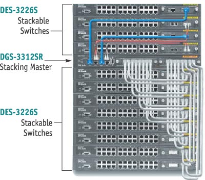 объединить в физический стек до 12 коммутаторов уровня доступа D-Link DES-3226S.