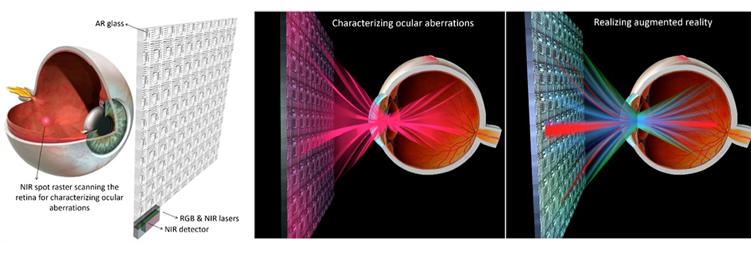 Междисциплинарная команда из Инженерной школы Колумбийского университета (Columbia Engineering) вместе с коллегами из Стэнфорда, Массачусетского университета в Амхерсте и корпорации Trex Enterprises получила грант DARPA на совершенствование разработанной ими конструкции лёгких очков дополненной реальности (AR), которые способны в реальном времени корректировать недостатки зрения пользователя и проецировать ему на сетчатку контекстную визуальную информацию.