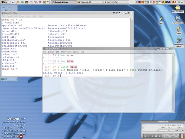 посредством расширенной консоли Tcl/Tk -- tkcon. Она входит в состав ActiveTcl