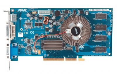 Флагман от NVidia, GeForce 6800Ultra, представлен видеоакселератором V9999ULTRA/2DT/N/256M/A от компании ASUS. Видеокарта, судя по всему, является одним из первых оригинальных продуктов NVidia, что не всегда можно считать достоинством – шум от «двухэтажной» системы охлаждения довольно ощутимый. Впрочем, если вы хотите стать обладателем одного из самых производительных решений для AGP, то это, пожалуй, неизбежно – топовых видеокарт от NVidia со штатными бесшумными системами охлаждения на украинском рынке практически нет.
