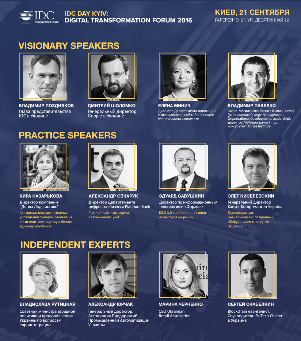 «IDC DIGITAL TRANSFORMATION Forum 2016» – это событие о том, какие стратегические задачи стоят перед компаниями в условиях цифровой экономики, и почему именно ИТ, пронизывающие все без исключения процессы в компании, должны стать той системообразующей функцией, которая способна вывести на новый уровень качество и скорость принятия управленческих решений, оптимизировать и автоматизировать производства, интегрировать и упростить взаимодействие с поставщиками, помочь компании выйти на новые рынки, привлечь новых клиентов и предложить им продукты, интегрированные в цифровую среду.