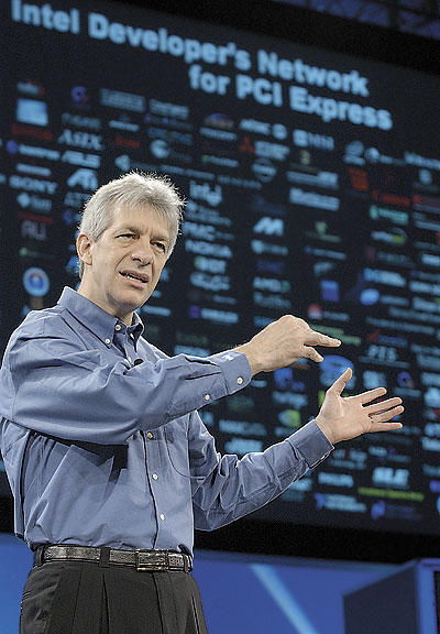 на главную сцену конференции вышел глава компании Крэйг Барретт (Craig Barrett).