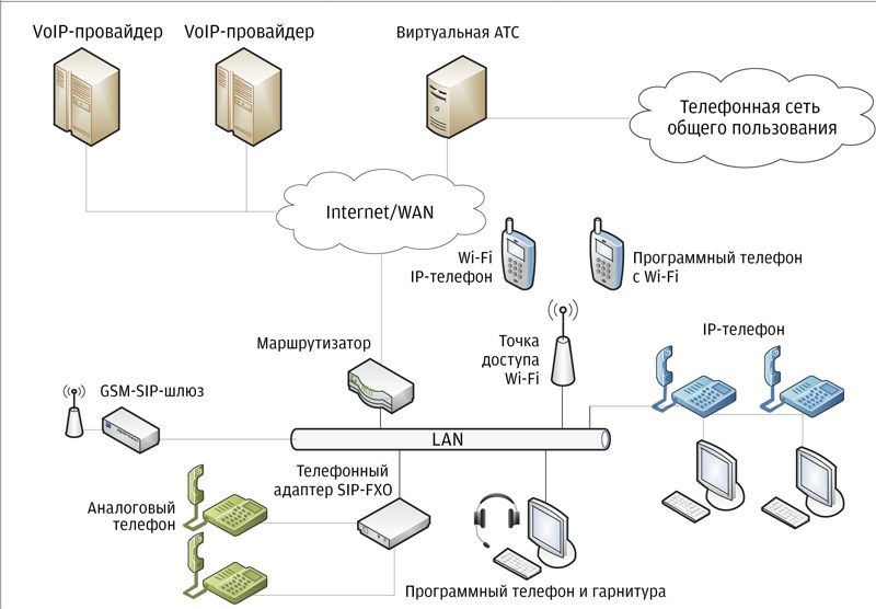 Типичная архитектура IP PBX при размещении на локальной площадке |