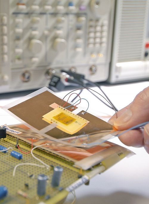 Еще одно интересное решение в данной области предложила Philips. Ее полнофункциональный радиоидентификатор, работающий на частоте 13,56 MHz, всецело базируется на пластиковой электронике. В отличие от традиционных RFID-меток на кремнии устройство может быть напечатано вместе с антенной прямо на пластиковой подложке (рис. 2).