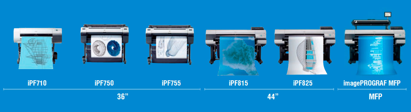 Модели iPF750, iPF755, iPF815 и iPF825 превосходно подходят для рынка быстрой печати документов САПР и ГИС по требованию с высочайшим качеством. Принтер iPF825 оптимален для непрерывной печати за счёт поддержки двух рулонов.