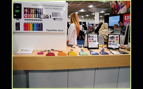 Теперь об участниках выставки. Пожалуй, нет смысла писать подробно о Shure, Sennheiser, HyperMac и прочих производителях аксессуаров к устройствам Apple. Они экспонировались в своем обычном формате. Были на Macworld Expo 2010 стенды и поинтереснее.