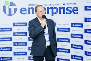 Работа форума началась с обзорного доклада технического директора компании Владимира Михайлова о развитии платформы IT-Enterprise 2017 и лучших бизнес-практиках управления. По его словам, IT-Enterprise уже несколько лет является платформой для многих бизнес-приложений. Начавшись с ERP-системы, она сегодня включает целую линейку продуктов. В этом году окончательно состоялась облачная ERP-система, названная Clobbi, также SmartTender.biz стала полноценной площадкой для электронных закупок. Были выпущены еще несколько систем на платформе IT-Enterprise, как то система документооборота для государственных предприятий, система начислений субсидий в Украине и ряд других.