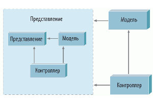 В составе MVC-приложения наиболее тесно связаны между собой представление и контроллер. Последний должен реагировать на внешние события, а их причиной в большинстве случаев являются действия пользователя, в распоряжении которого нет ничего кроме интерфейса приложения – а отвечает за него представление. Как правило, для вызова контроллера используются управляющие элементы, присутствующие в составе интерфейса наряду с отображаемыми данными. В результате контроллер оказывается связан с представлением через интерфейсный элемент, и полностью разорвать эту связь невозможно.