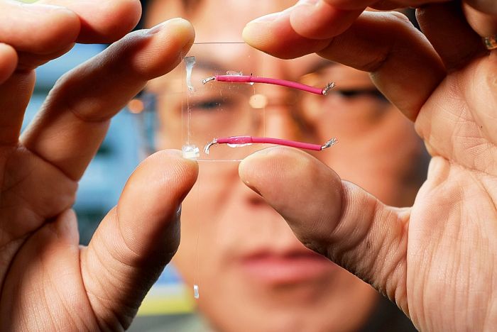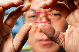 | Джун Лин Ван демонстрирует прототип микроволоконного наногенератора |