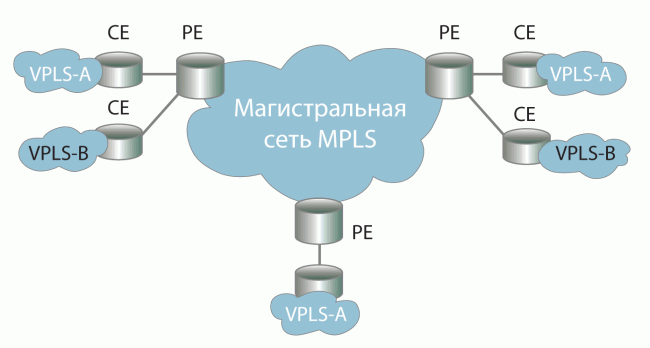 VPLS является классом виртуальных частных сетей (VPN), который поддерживает соединение множества сайтов в едином мостовом домене, позволяя им разделять широковещательный домен Ethernet, как если бы они были подключены к одной сети. В противоположность виртуальным сетям на уровне 2 модели OSI, таким как L2 MPLS VPN и L2TP, которые формируют только туннели «точка-точка», VPLS позволяет многоточечные соединения.