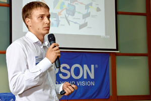 Александр Думанский, менеджер по развитию проекторного бизнеса, ознакомил с линейкой проекторов Epson. Особо подчеркнув лидерские позиции компании в данном сегменте (доля 20,3% по итогам 2008 г.), а также то, что история производства этих устройств в Epson насчитывает, ни много ни мало, 20 лет, докладчик остановился на их конкурентных преимуществах, и прежде всего фирменной технологии 3LCD, обладающей рядом достоинств по сравнению с DLP, таких как боóльшая эффективность использования излучения лампы, высокая цветовая яркость, лучшая цветопередача. Немаловажно и то, что все ключевые компоненты для этих устройств Epson производит самостоятельно.