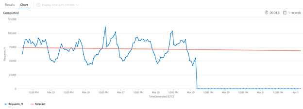 | make-series Requests_H = count() on TimeGenerated from min_t to max_t+3d step 1h