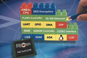 Одним из самых ярких событий, несмотря на не слишком высокие технические показатели предлагаемой системы, можно считать скромное объявление, сделанное 15 декабря 2000 г. калифорнийской компанией Metaflow на конференции Design—Reuse («Проектирование— Повторное использование») в Гренобле. Впервые в истории индустрии на рынке появляется SOC с... открытыми исходными текстами. За основу новой системы Implosion (это действительно взрыв!) принята разработка процессора Leon-1 — 32-битового, SPARC-совместимого процессора, созданного и «освобожденного» в рамках космического проекта Европейского Космического Агентства. Исходные тексты пригодной к синтезу модели процессора Leon-1 доступны на основании лицензии GNU, а сам процессор соответствует стандарту IEEE-P1754 (на архитектуру SPARC). Следует отметить, что реализация Leon-1 весьма неприхотлива — для нее требуется менее 30 тыс. вентилей, а при технологической норме производства 0,35 мкм можно выпускать кристаллы с тактовой частотой 100 MHz, что для специфических SOC-задач обеспечивает более чем приемлемую производительность. Площадь кристалла, необходимого для реализации Leon-1 при этой же технологической норме, — менее 2 мм2. Для Leon-1 доступна масса высококачественных бесплатных программных продуктов — от операционных систем реального времени (например, eCOS, совместимой со спецификациями TRON) и различных реализаций ОС Unix (включая Linux) до компиляторов языков С++ и Ada 95 (gcc и gnat), отладчиков, загрузчиков и симуляторов. Разработчики из Metaflow (подразделения STMicroelectronics), используя более чем 15-летний опыт проектирования сложных микроэлектронных систем, добавили к базовому модулю Leon-1 обширный ряд синтезируемых периферийных устройств: адаптеры Ethernet/FastEthernet, многоканальные контроллеры DMA, оперативной памяти SRAM, flashпамяти, USB-контроллеры, VGA/SVGA/XGA LCD-видеоконтроллер с поддерживаемым разрешением до 1024 × 768 пикселов, DSP-сопроцессор, сопроцессор плавающей точки и аппаратную подсистему шифрования/дешифрования.