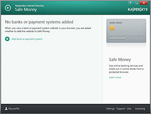Интерфейс режима Безопасные платежи в Kaspersky Internet Security для всех устройств 2014