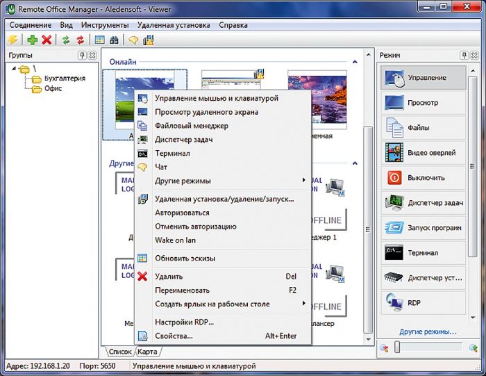 В наибольшей же степени нашим требованиям, пожалуй, отвечают российские программы Radmin (ko-online.com.ua/28209), безусловный лидер на постсоветском пространстве, и чуть менее известная Remote Office Manager (www.aledensoft.ru), на которой мы и остановимся подробнее.