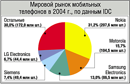 Согласно оценкам IDC, в 2004 г. мировой объем поставок мобильных телефонов достиг