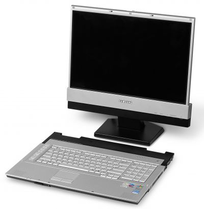 На выставке IFA в Берлине компания Samsung продемонстрировала своего рода уникальную разработку – мультимедийный ноутбук с отсоединяющимся 19-дюймовым экраном, носящий название М70. И пока в Интернете продолжаются дискуссии на тему, можно ли подобную систему называть ноутбуком в полном смысле этого слова (все же «notebook» по-английски – записная книжка), мы имеем возможность познакомиться с ним поближе.