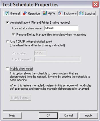 Специальный режим позволяет обслуживать мобильные компьютеры даже вне корпоративной сети. Для этого необходимые модули сохраняются (по умолчанию они удаляются после каждой операции) на ноутбуке, а задания оформляются локально в системном планировщике. Эта же методика подходит и для рабочих станций, используемых без какого бы то ни было постоянного расписания. При сложной сетевой инфраструктуре Defrag Manager 3.0 также сможет управлять любыми компьютерами, до которых удастся добраться по обычному TCP/IP, -- требуется только наличие предварительно установленной программы-агента.