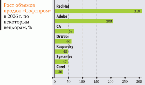 Оборот «Софтпром» в 2005 г. достиг 4,6 млн долл., в текущем году ожидается рост показателей по меньшей мере на 30%. Наиболее динамично в 2006 г. растут продажи продукции Red Hat (к сегодняшнему дню они увеличились на 310%) и Adobe (на 208%). Доля компании на отечественном рынке программного обеспечения в настоящее время, по мнению г-на Ждановича, составляет 6–7%. Напомним, что общий объем продаж ПО в Украине, включая ERP-системы, за прошлый год оценивался в 80 млн долл., к 2009 г. он предположительно утроится.
