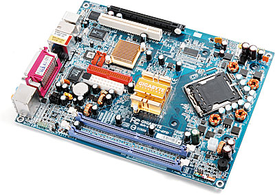 В чем же преимущества BTX по сравнению с предшественником? В первую очередь, нововведения коснулись шасси по сути, мы имеем абсолютно новую компоновку элементов внутри корпуса, которые теперь располагаются в нескольких термальных зонах. Такое размещение способствует эффективному охлаждению самых горячих компонентов системы, обеспечивая непрерывный поток воздуха через систему воздушных коридоров. В соответствии с этим серьезные изменения коснулись дизайна материнских плат расположение элементов на них теперь выполнено с учетом перепланировки корпуса. На данный момент стандартом BTX предусмотрены следующие формфакторы системных плат: picoBTX, microBTX и полноразмерный BTX. Отметим, что на момент написания материала нам так и не удалось найти в Украине корпус нового формфактора, поэтому судить об удобстве такого расположения комплектующих и эффективности планировки воздуховодов пока возможно лишь по спецификациям. Однако уже сегодня мы можем составить первое впечатление о материнских платах нового стандарта. К нам в Тестовую лабораторию попал образец системной платы наиболее компактного размера picoBTX Gigabyte GA-8I915G-ZFD на базе чипсета Intel 915G. Формат picoBTX позиционируется как платформа для офисного ПК и barebone-систем, потому возможности для расширения тут минимальны. Первое, что бросается в глаза, это полностью измененное расположение элементов и разъемов. Процессорный сокет теперь находится у правого края платы, а не сверху, как раньше. Изменилось и размещение слотов оперативной памяти они находятся в самом низу. Плата имеет на борту по одному разъему PCI и PCI Express x16, расположенному слева вверху там, где раньше был процессорный сокет. В соответствии со стандартами изготовления бюджетных плат графический адаптер и звук 7.1 интегрированы на плате.