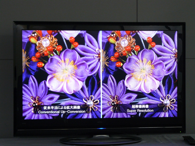 На выставке CEATEC JAPAN 2008 Hitachi продемонстрировала технологию «супер-разрешения», которая заметно улучшает четкость картинки при алгоритмическом увеличении ее разрешения, по сравнению с обычной интерполяцией.