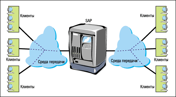 Вопросы надежности функционирования в контексте терминальных решений имеет смысл рассматривать вместе с вопросами конфиденциальности. Для крупных структур типичным является размещение всей критически важной и конфиденциальной информации в физически контролируемом владельцами холдинга помещении и с назначением ответственного за сохранность и достоверность данных лица из числа топ-менеджеров или совладельцев. И в подобном случае придумать что-то лучшее, чем терминальный доступ к приложению на центральном сервере через каналы VPN с применением шифрования, вообще трудно. Причем если для отечественных холдингов это, скорее, возможность защититься от различных непредвиденных ситуаций в офисах территориальных подразделений (перепродажа БД конкурентам, кража оборудования), то для западных компаний-- это норма. Крупной транснациональной корпорации достаточно иметь два-три вычислительных центра и выделенные цифровые каналы, чтобы поддерживать свои торговые представительства и производственные мощности практически в каждой стране на планете! Классическим примером программной поддержки "глобального" подхода являются продукты фирмы SAP (рис. 2). Вполне естественно, что есть здесь экономия и на серверах, и на лицензиях на одновременный доступ (Земля-то вертится, а люди работают преимущественно днем), и эффективное использование трудовых ресурсов (армия AnyKey'щиков стоит не очень дорого, плюс дифференциация оплаты по странам). Есть и надежный контроль за сохранностью и возможными путями утечки информации.