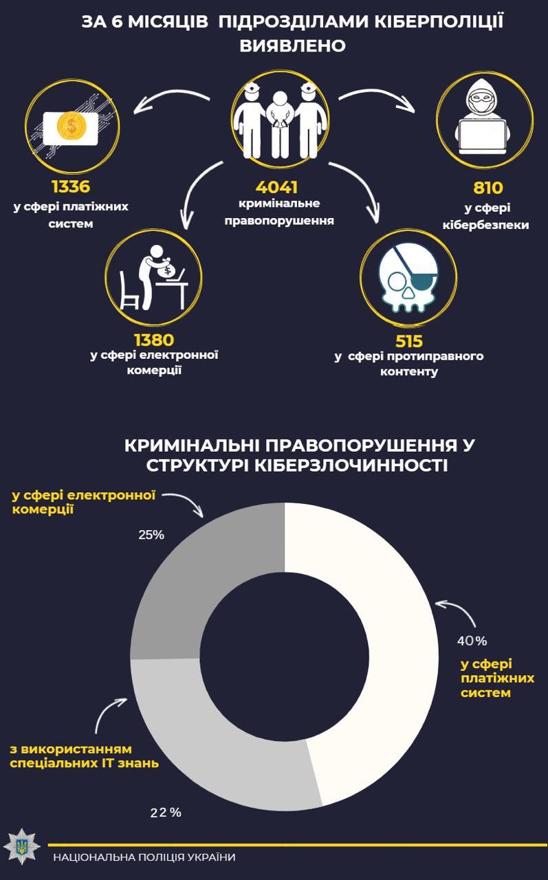 Число преступлений, которые задевали электронную коммерцию в первом полугодии достигло 1380. В сфере платежных систем киберполиция зафиксировала 1336 правонарушений, что в 1,4 раза больше по сравнению с прошлым годом.