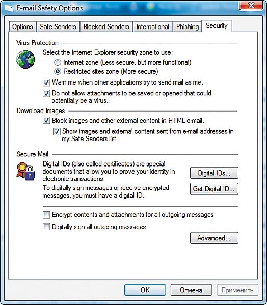 | В Windows Live Mail Desktop объединены все защитные механизмы, присутствующие в современных Outlook Express и Windows Mail |