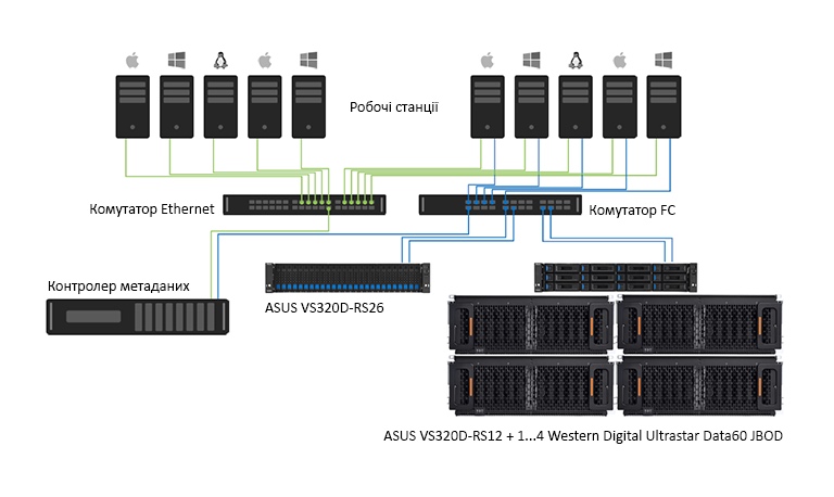 Одне сховище ASUS / Чотири WD Ultrastar Data60 або Data102 JBOD / Дубльовані шляхи