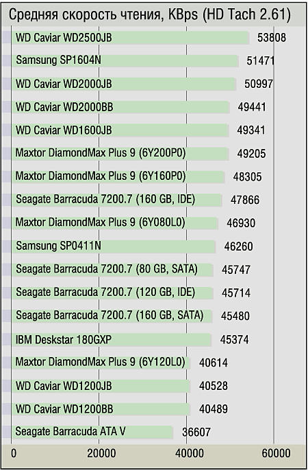 Безусловным лидером в этом тесте стал новый винчестер от Western Digital -- WD2500JB.